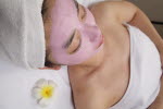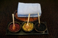 フェイシャルケアの下準備として、足浴&スクラブを行い、背中のホットストーンマッサージを行います。そしてフェイシャルケアへ。まずはクレンジングで肌の汚れを落とし、角質除去、一次マスクを行います。一次マスクを馴染ませる間、お腹部分にホットストーンマッサージを行います。 次に温めた石と冷たい石でフェイスマッサージを行い血行を促進したところで2次マスクを行い、栄養分を深く浸透させるためゴムマスクをして仕上げます。