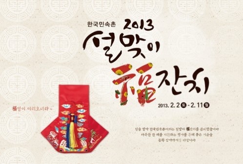 韓国民族村にて2月2日(土)~11日(月)までの10日間「2013ソルラル(旧正月)福祭り」が開催されます。このお祭りでは韓国伝統の新年行事やソルラル(旧正月)の遊びまた韓国伝統舞踊などの公演などイベントが盛りだくさんです。この期間中は韓国伝統衣装であるチマチョゴリを着ていくと入場料および自由利用券がなんと50%も割引になります。韓国伝統文化、ソルラルを体験してみませんか。