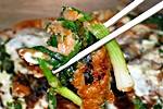 東莱パジョンは東莱市場の中で1900年代初頭に始まったとされ当時市場で働く人たちの昼食や軽食として親しまれたものが評判をよび、郷土料理として朝鮮王朝の宮廷に献上されその人気を確立していったといわれています。 他の一般的なパジョンと違い分厚くできていて日本にお好み焼きに近いもの。中はトロっとしていてとてもジューシー。
