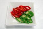 ◇赤唐辛子と青唐辛子は薄く切って種を取っておく