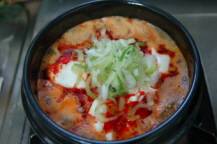 説明 やわらかな豆腐(純豆腐)をアサリなど魚介類で取ったスープで煮込む辛目のスープ料理