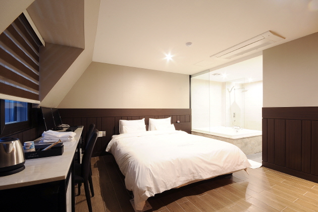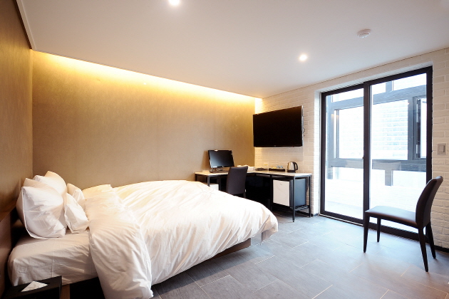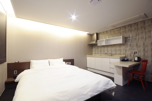客室はスタンダードダブル、デラックスダブル、キッチン付ダブル、デラックスツイン、cafe styleダブルの5タイプ。パンやコーヒーなどの簡単な朝食がサービスで提供され、2階の朝食スペースにはキッチンもあり調理も可能です。またランドリースペースもありますので、長期滞在にも便利。クイーンズホテルは優れた施設の管理やサービス、適正な料金設定が評価され、韓国観光公社によりGood Stayマークが掲げられているホテルですので、安心してご利用いただけます。