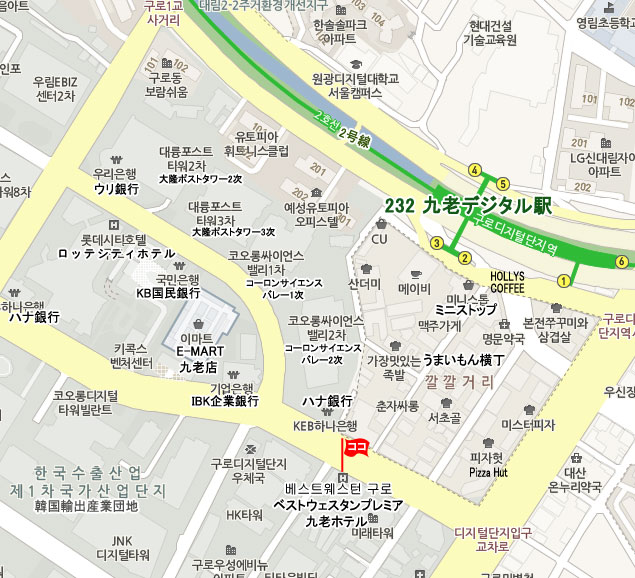 九老デジタル団地駅下車、2番出口から徒歩約5分