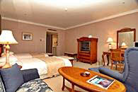 本館、別館あわせて総客室数 500のホテルロッテ済州。地上12階建ての建物の中間部、8階がロビーラウンジ、9~12階、1~5階が客室となっています。また6階には免税店とカジノ、レストランがあります。客室は、スタンダード(ダブル・ツイン)、スーペリア(ダブル・ツイン)、デラックス(ダブル・ツイン)、ラグジュアリー(ダブル・ツイン・ファミリー)、スイート(ジュニア・プレジデンシャル・ロイヤル)となっていて、どのようなお客様にも対応可能です。大きな窓からは太平洋の美しい様子を手に取るように見ることができます。ぜひ、ロッテホテルで済州島の魅力を存分に楽しんでください。
