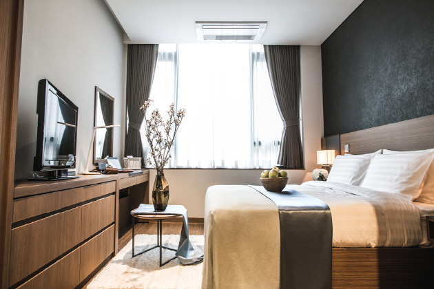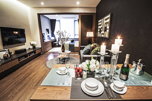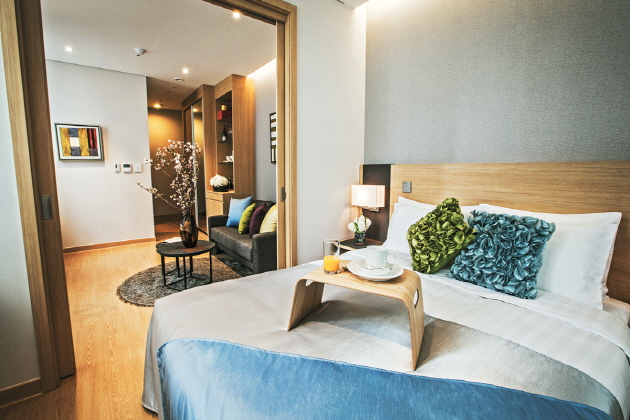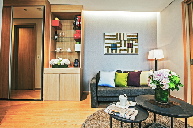 レジデンス建物内にはレストラン、ラウンジ、フィットネスセンター、サウナ、バー、ビジネスセンターや会議室が完備されホテル並の付帯施設が整っています。ホテル利用客はフィットネスセンターやサウナを無料でご利用頂けます。客室は高級アパートメントようなモダンなインテリアでまとめられ、ゆったりとした造りとなっていますので、スーツケースを気にすることなくのびのびとお休み頂けます。高級ホテル並のサービスと館内警備システムが整っていまsので、長期滞在や女性お一人でのご利用にも安心頂けます。