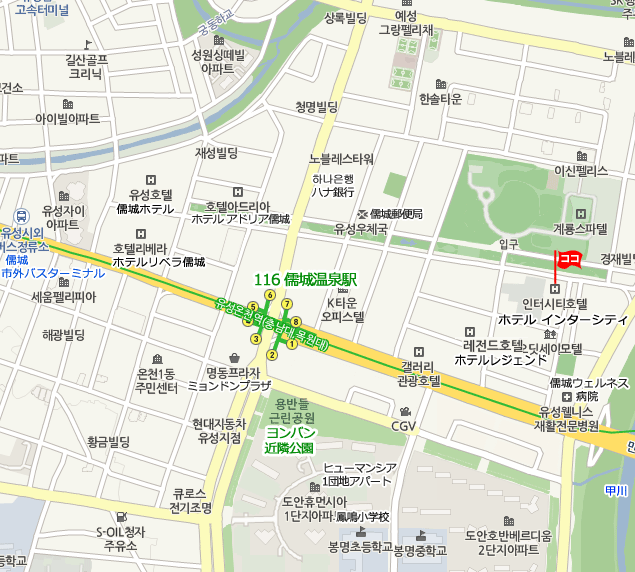 •  大田地下鉄儒城温泉(ユソンオンチョン)駅から:8番出口から徒歩約10分