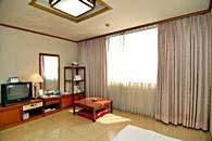 南江沿いのホテルは地下1階、地上11階で、最上階の11階にはスカイラウンジとビュッフェレストランが入っています。客室は全部で123室、スタンダードダブル、スタンダードツイン、スタンダードオンドル、ジュニアスイート、ロイヤルスイートの5タイプです。また、3階には男性専用のサウナがあり、地下にはカラオケ(クラブ)もありますので、ビジネスの接待などにもご利用ください。