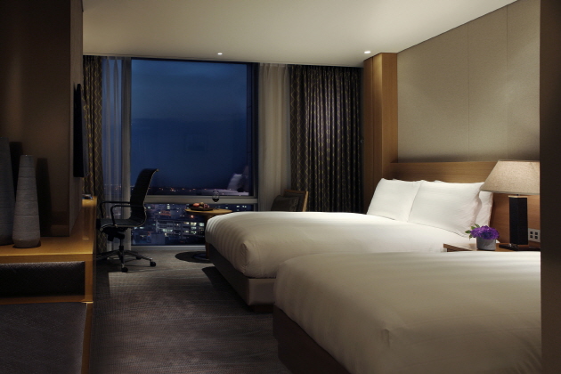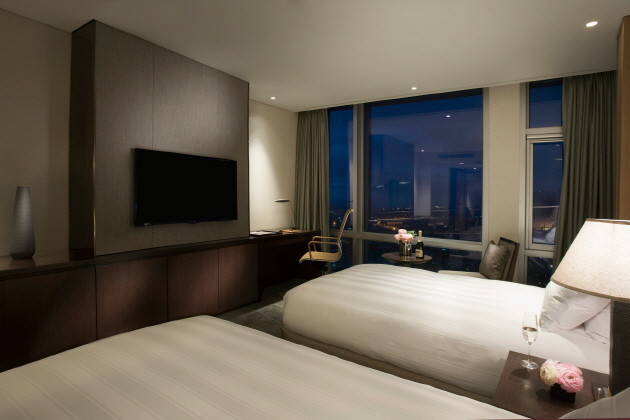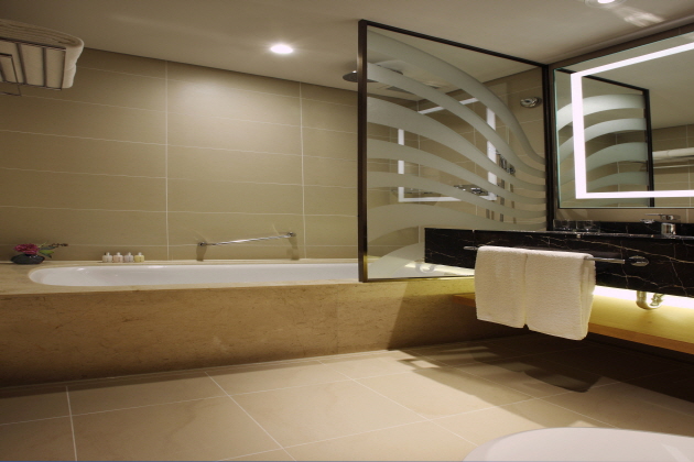バスタブやウォッシュレット付トイレが完備された客室は建物7階から21階と上層階に位置していますので、客室タイプにより窓から済州の街並みや海、漢拏山(ハルラサン)を眺めることができます。寝具はロッテホテルと有名寝具メーカーが共同で開発した独自のマットレスが用意されゆったりとお休み頂けます。ロッテシティホテル済州は特に付帯施設が充実し、宿泊客のみ利用できる屋外プールをはじめ、サウナ、フィットネス、カフェ、レストランとビジネスセンターと充実したホテルライフをお過ごし頂けます。ファミリーやロングステイに嬉しい、またコインランドリーも揃っています。ネット環境も全室でWi-Fiが無料利用でき問題ありません。理想的なホテルステイが過ごせるロッテシティホテル済州で済州島旅行をお楽しみください。