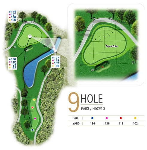 付帯施設は最高級のインテリアで飾られ、快適な休息を取れるクラブハウスをはじめ、個室も用意され宴会も楽しめるレストラン、軽い食事をとれる各休憩所、サウナ、プロショップなどの施設が整っています。18ホールのコースは、全体的なコースの距離を伸ばし、余裕を持って戦略的なゴルフを楽しめるよう設計されています。伝統的な2グリーン方式を現代的感覚に合わせ1グリーンとし変化を持たせたバンカーを随所に配置しコースの難易度が高められています。またティーグラウンドを天然芝に代え、ゴルファーの技量に合わせティーを選択するシステムを導入しました。