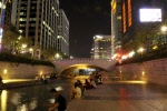 清渓川(チョンゲチョン)はソウルの中心部を流れる長さ約5.8キロの河川。李氏朝鮮時代初期から下水道、貧民街、埋め立てと不幸な歴史を辿っていましたが、清渓川の上に架けられていた高架道路の老築化と撤去に伴い2年の歳月をかけて復元工事が行われ、現在ではソウル市民の憩いの場として生まれ変わりました。 川には人工的に浄水された清らかな水が流れ、昼には自然と共存した憩いの場として、夜は美しくライトアップされロマンティックな雰囲気を創り出しています。