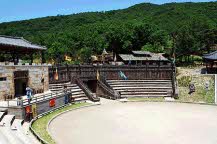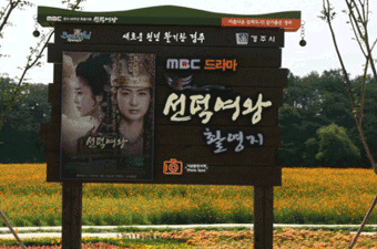 新羅時代に実在した、韓半島で始めての女王となった善徳女王を主人公にしたドラマ「善徳女王」のオープンセット場。総工費20億ウォンをかけて建設されたセット場には新羅時代の宮殿、花郎の宿泊場、花郎演武場、貴族の家屋などが再現されました。 「善徳女王」は日本以外の国での放送も決定され、慶州及び新羅ミレニアムパークでは海外からの観光客の誘致にも積極的に取り組んでいます。