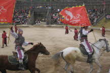建設費100億ウォンをかけて造られた大型舞台で繰り広げられる各種特殊効果やスタントなどを用いた本格的な水上ショー。ショーの内容は1人の花郎(ファラン)が新羅の危機を救うストーリーの舞台が1日2公演、新羅最初の女王善徳女王の悲恋の物語をテーマにしたストーリーの舞台が1日1公演それぞれ30分ずつ行われます。舞台では各俳優の熱演が繰り広げられ、特に水上に浮かんで微動だにしない死体役の俳優には大きな拍手が送られます。 新羅時代、貴族の子息で組織されたエリート集団「花郎(ファラン)」。その花郎の武芸訓練をテーマにしたショーも行われています。特に馬上武術のショーは必見で、その勇猛な動きは訓練場周囲に配置された新羅時代の建物とマッチし、新羅時代にタイムスリップさせてくれます。