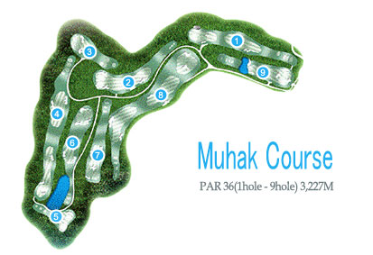 コースは3種類。ティーグラウンドから全ホールと南海岸の海が一目で見渡せ、広めのフェアウェイが開放感を感じさせてくれる「Muhakコース(9ホール)」、ウォーターハザードやバンカーがコースの随所に配置され精巧なショットが求められる「Baekroコース(9ホール)」、人工滝からの涼しい水音が聞こえる異国的なアレンジが施された「Baekguコース(9ホール)」とそれぞれに異なった魅力を持つ3つのコースが揃っています。