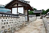 説明 朝鮮時代各階層の伝統家屋5棟が復元された韓屋村(ハンオクマウル)