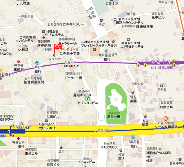 現地 アクセス       地下鉄 3号線の安国駅 (No.328 アングッ・Anguk)で降りて、駅6番出口より 徒歩約6分。
