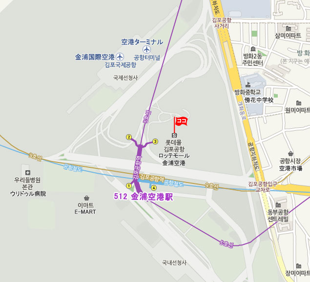 現地 アクセス  地下鉄5号線金浦空港(Gimpo Int'l Airport)駅 直結