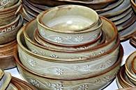 こちらの食器には、陶磁器もあればスレンレス製もあります。お好みに合わせてどうぞ。最近はステンレス製のお箸で中が空洞になっているのがあります。軽くて使いやすいので、人気があるそうです。また、石製のナベですが、ステンレスで補強をしたものもあります。これなら、間違えて使って割れてしまったということもありませんので、安心して使えますよ。