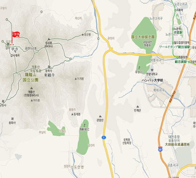 住所 忠清南道(チュンチョンナムド)公州(コンジュ)市 鶏竜面(ケリョンミョン)外巖里(ウィアムリ)中将里(ジュンジャンリ)52 鶏竜山