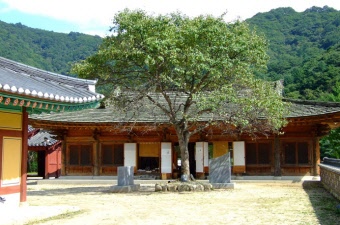 鬱蒼とした針葉樹林に囲まれた新羅時代創建の寺院