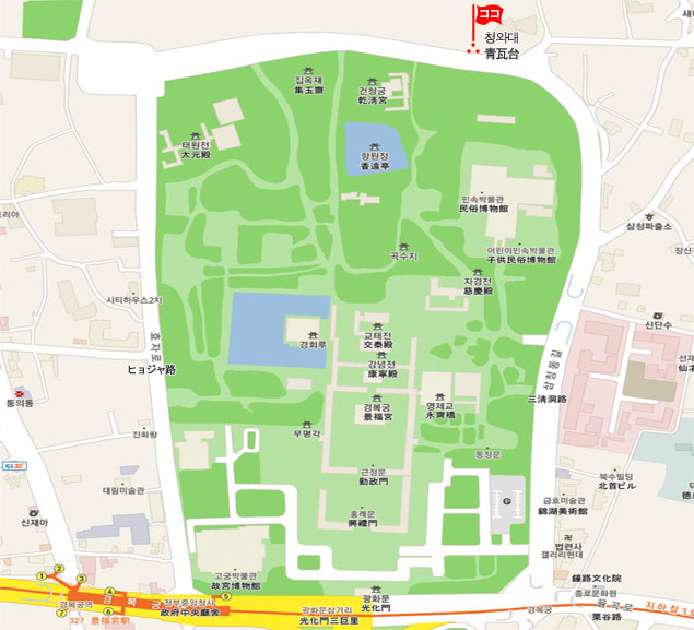 現地 アクセス   地下鉄 3号線 景福宮 (No.327  Gyeongbokgung) 駅 4番出口から徒歩10分。
