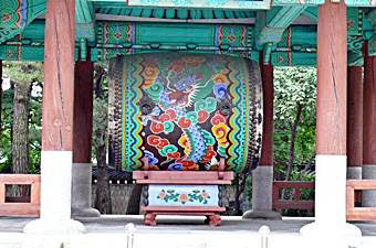 青瓦台(チョンワデ)とはその名の通り、鮮やかな青い瓦の屋根が特徴の韓国大統領の官邸。この場所は、もともと高麗時代に王族が住んだ一帯であり、李氏朝鮮王朝の太祖李成桂:イ・ソンゲの命により建造された景福宮の敷地の一部が、大韓民国が成立後、大統領の官邸及び公邸として利用されてきました。朴正煕政権下の1968年には、官邸が北朝鮮ゲリラに襲われる青瓦台襲撃未遂事件が起こった場所でもあります。自然豊かな官邸内には象徴的な鳳凰の像など見所が多いですが、やはりメインは青い瓦屋根が印象的な本館。背後に北岳山(プッカンサン)がそびえる建物は威厳があります。