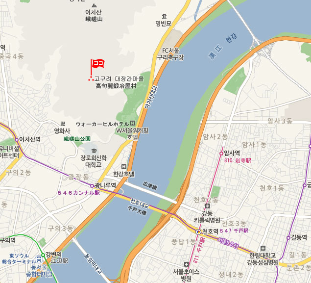 現地 アクセス  地下鉄2号線江辺(カンビョン、Gangbyeon)駅3番出口から タクシー利用(所要時間約15分)