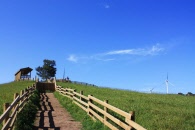 牧場入口の広場から標高1140メートルの展望台までは約4.5キロあり、徒歩ですと大人の足で約1時間20分ほどの距離。無料で運行するシャトルバスは4箇所の停留所で乗り降りが可能ですのでシャトルバスを上手に利用しれば無理なく散策を楽しめます。風力発電の封書も並ぶ牧場はその景色の雄大さから「秋の童話」をはじめ、「ブラザーフッド」、「シルミド」、「2重スパイ」など映画やドラマの撮影も行われ、牧場内のあちこちに案内板が置かれています。韓国のアルプスとも呼ばれる大関嶺の広大な牧場で日常を忘れるほどの雄大な景色をお楽しみください。