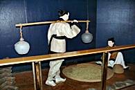 また、韓国各地の国宝や遺跡のレプリカも展示してあるので、時間のない方にはとても魅力的です。慶州の石窟岩の釈迦像や公州の武寧王陵などが正確に再現されています。また、展示に使われている人形たちが、まるで生きているかのように表情が豊かです。これは、人形を一つ一つ手作りをしたため。このような人形制作も韓国の伝統工芸の技術を生かしたものです。民俗博物館だけ見学する場合は入場券が必要ですが、伝統工房街と民俗食堂街は入場券なしで利用することが出来ます。またロッテワールド のフリーチケットがあれば、入場は無料です。