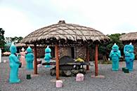 仮面とお化け(トッケビ)博物館は、1階の展示館には植民地時代に失われてしまった済州島の仮面と韓国各地の仮面劇、韓紙の人形、また、神秘の済州島を守っていた12神の仮面など、300余りの仮面を展示しています。また、地下の展示室には韓国のお化け(トッケビ)の仮面や、森の中に住むというお化け、死後の世界の9大地獄の再現、天地創造のお化けの造形物、済州島のお化けの話などを展示しています。野外にはお化けに関連した説話や祠などが展示されています。また博物館では仮面作りなどの体験教室も併せて行っています。