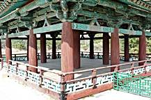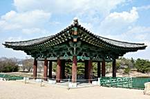 雁鴨池(アンアブチ)は新羅の第30代の王である文武大王が高句麗、百済を滅ぼし三国統一を達成した後、宮城内に造成した当時月池とよばれた庭園。半月城からすぐの距離にあり、679年に池の西側に臨海殿(イムへジョン)が造られ、当時は1000人を越す収容できるほどの広さを誇り、王族の宴会や来賓の接待に使われていました。臨海殿とは池が海につながっているように思わせるため池の入り江の奥を見えないように造り、さらに海から運んだ石を庭石にそえたことから名づけられました。記録では新羅最後の王である敬順王が高麗の太祖王建のために宴会を施したとされています。雁鴨池では人工的に島や丘を作り、花々や草木を植え珍しい鳥や動物を飼育したと記録が残っています。