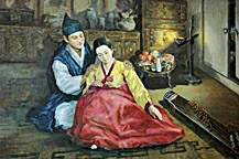 広寒楼を舞台にしたパンソリの「春香歌」は次のようなストーリーです。南原府使の息子・李夢龍(イ・モンニョン)は、妓生の娘・成春香(ソン・チュニャン)を、広寒楼で見初め、お互いに愛するようになりました。 しかし父の任期が終わり、夢龍は漢陽(現在のソウル)に帰ることになり夢龍と春香は再会を誓って別れることになります。新たに赴任した卞(ピョン)府使は、春香の美貌を聞きつけて言い寄りますが、春香は夢龍への貞節を守ることを主張して従いません。激怒した卞府使は春香を拷問した上、投獄してしまいます。
