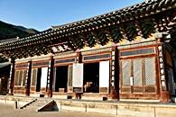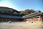 現在の木造建物はすべて朝鮮時代に再建されたものですが、石造りの遺物は創建当時(新羅時代)のまま残っています。 寺院内に残る石塔は6メートルの高さを誇り、韓国国内では一番の高さ。国宝第12号に指定されています。